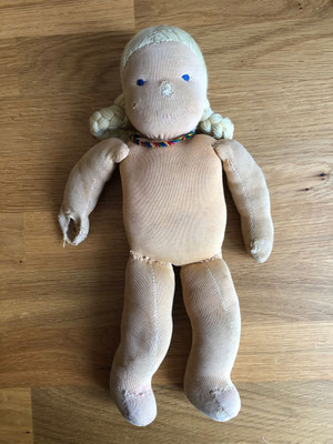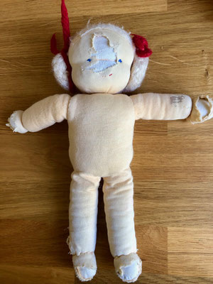 Mein Ziel einer Reparatur ist es, die Schäden an der Puppe zu beheben und sie in einen Zustand zu versetzen, in dem sie wieder bespielt werden kann. Dabei ist es mir sehr wichtig, den Ausdruck und den Charakter der Puppe zu erhalten. Die Puppe aber wird in keinem Falle genauso werden, wie zuvor, denn nach der Reparatur riecht sie anders, der Stoff ist vom vielen Anfassen nicht mehr so glatt und die vertrauten Flecken oder Löcher fehlen. Und dennoch wird es die gleiche Puppe sein, die geliebt zu mir kam und sie wird, sobald sie wieder zu Hause angekommen ist, auch wieder geliebt werden – das zeigt bisher meine Erfahrung.