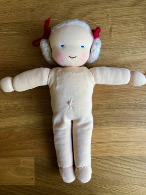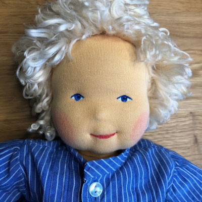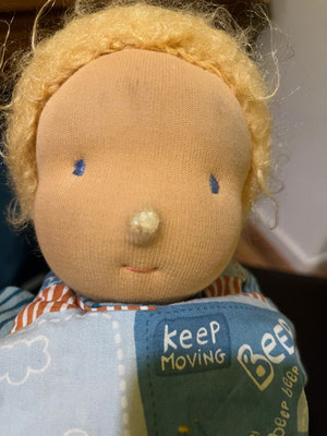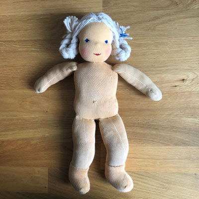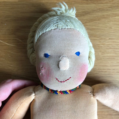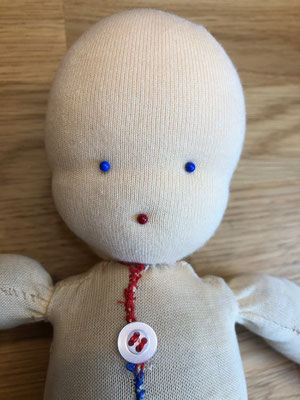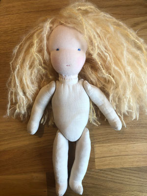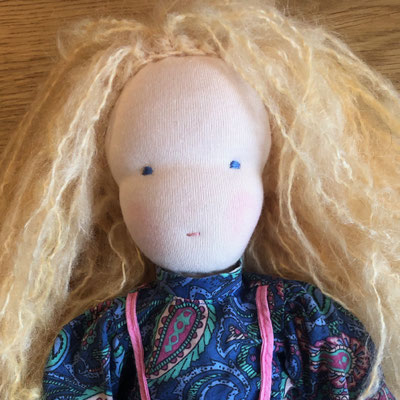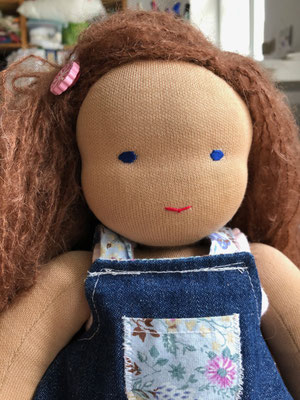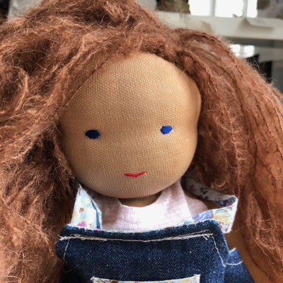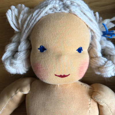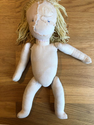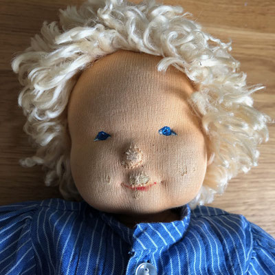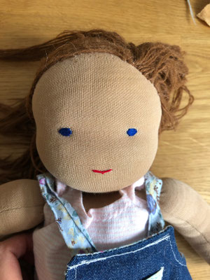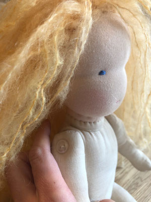 Natürlich kann es auch das Ziel sein, den Ausdruck der Puppe zu verändern. Vielleicht soll sie andere Augen bekommen oder das Kind wünscht sich Haare für die Puppe. Auch solche Wünsche nehme ich gerne entgegen.