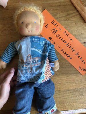 "Liebe Julia, wir haben uns wahnsinnig über die Puppe gefreut und auch F. hatte gar keinen Zweifel daran, dass es ihre Puppe ist. (...) Wir sind alle froh über den Erhalt der geliebten Puppe."